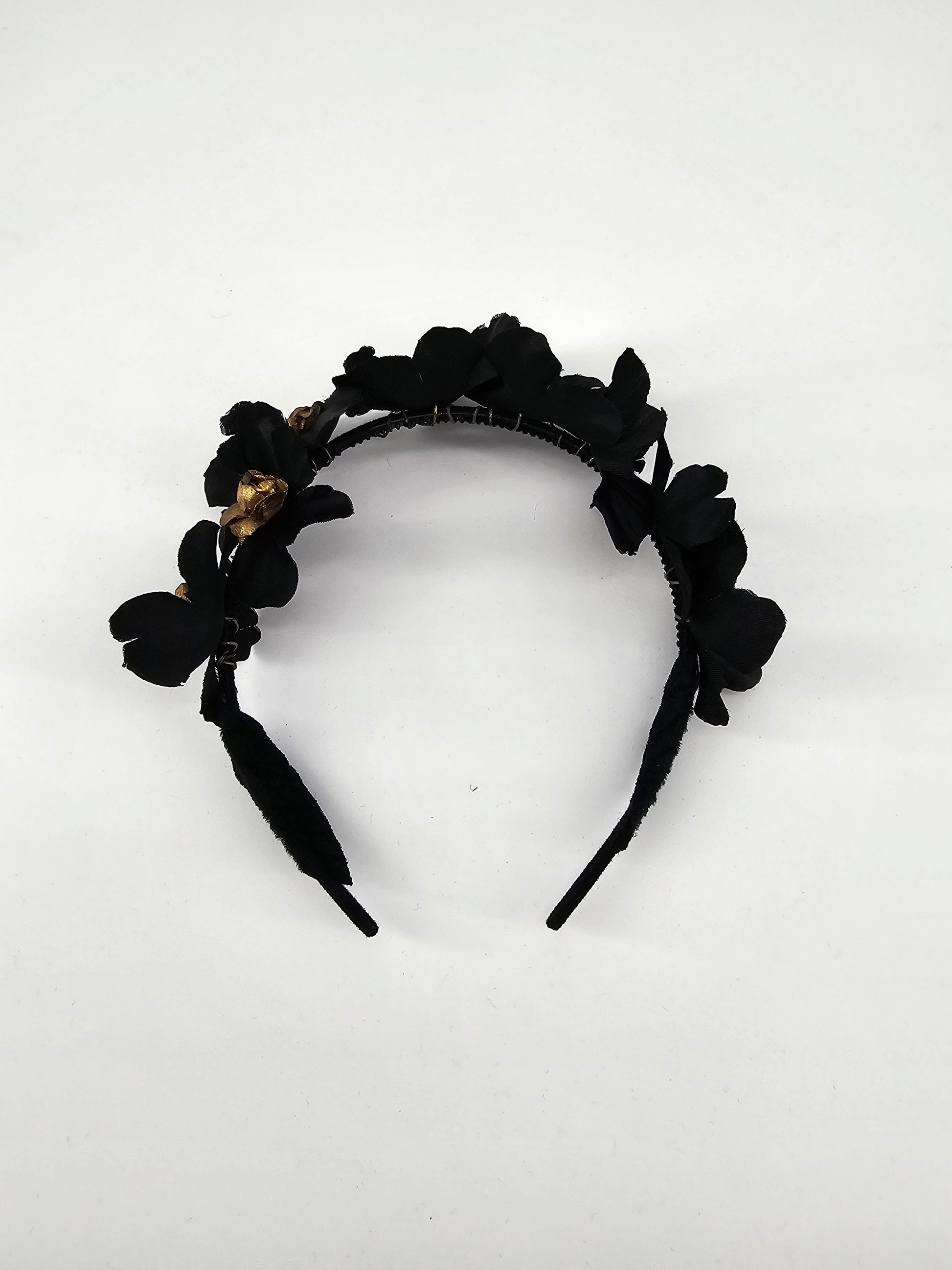 Black & Gold Floral Headpiece – Elegance in Bloom