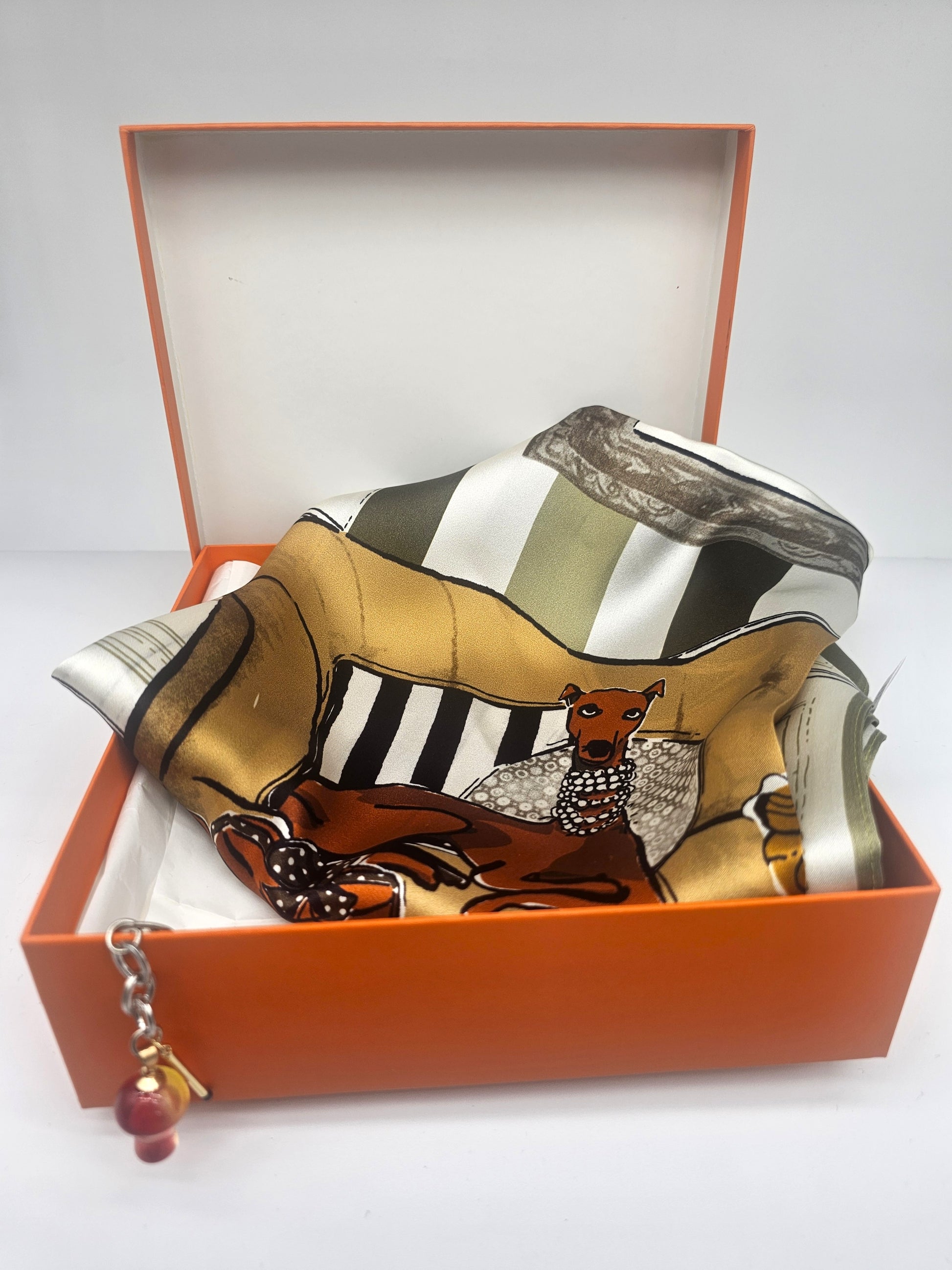 100% Mulberry Silk Square Scarf – Olive/Black/Marigold